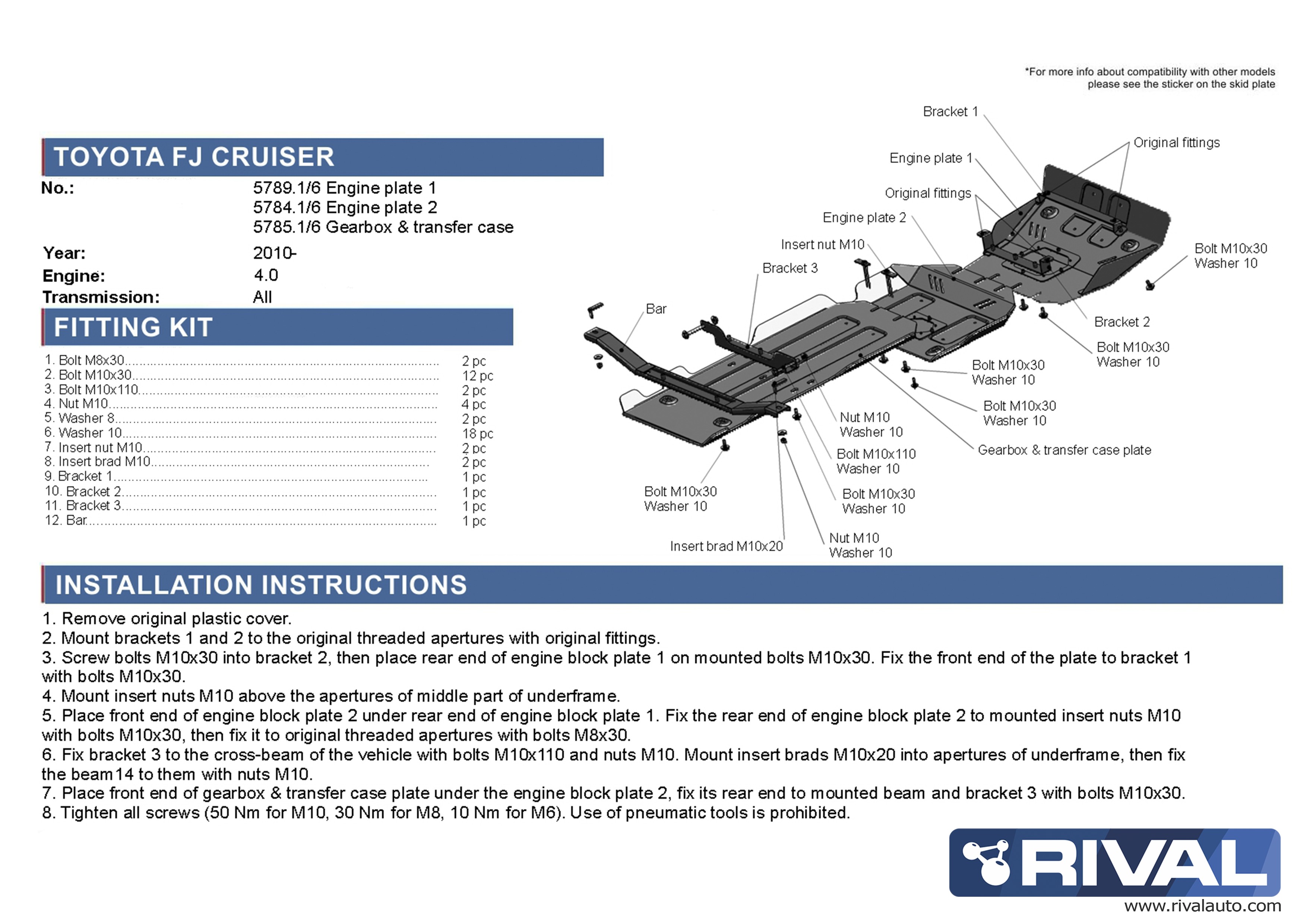 מיגון תחתון 4 חלקים 6MM לטויוטה לנדקרוזר 200 2007-2015+ Rival