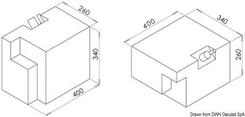 מיכל מים קשיח מלבני עשוי פוליפרופילן. באיכות גבוהה - תוצרת איטליה - תקן Food Approved מתאים למי שתייה. עמיד ושומר על תכונותיו בטווח טמפרטורות של מינוס 40 עד 60 מעלות צלזיוס, מתאים למגוון רחב של שימושים: החל מסירות ויאכטות, זיווד רכב, רכבי שטח, גיפ' 4x4 ,קראוונים ועוד. לחץ למילוי מים מקסימלי הינו עד 0.2 bar